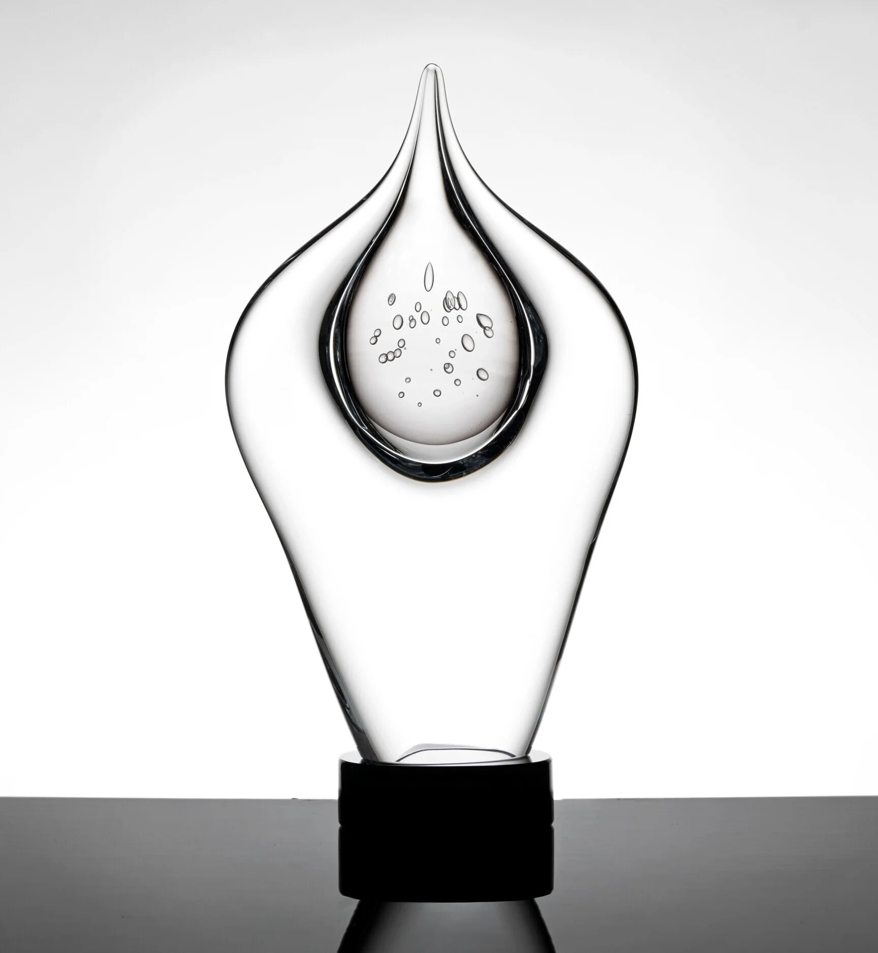 Technique - Clear glass, inserted bubbles, hot sculpted.